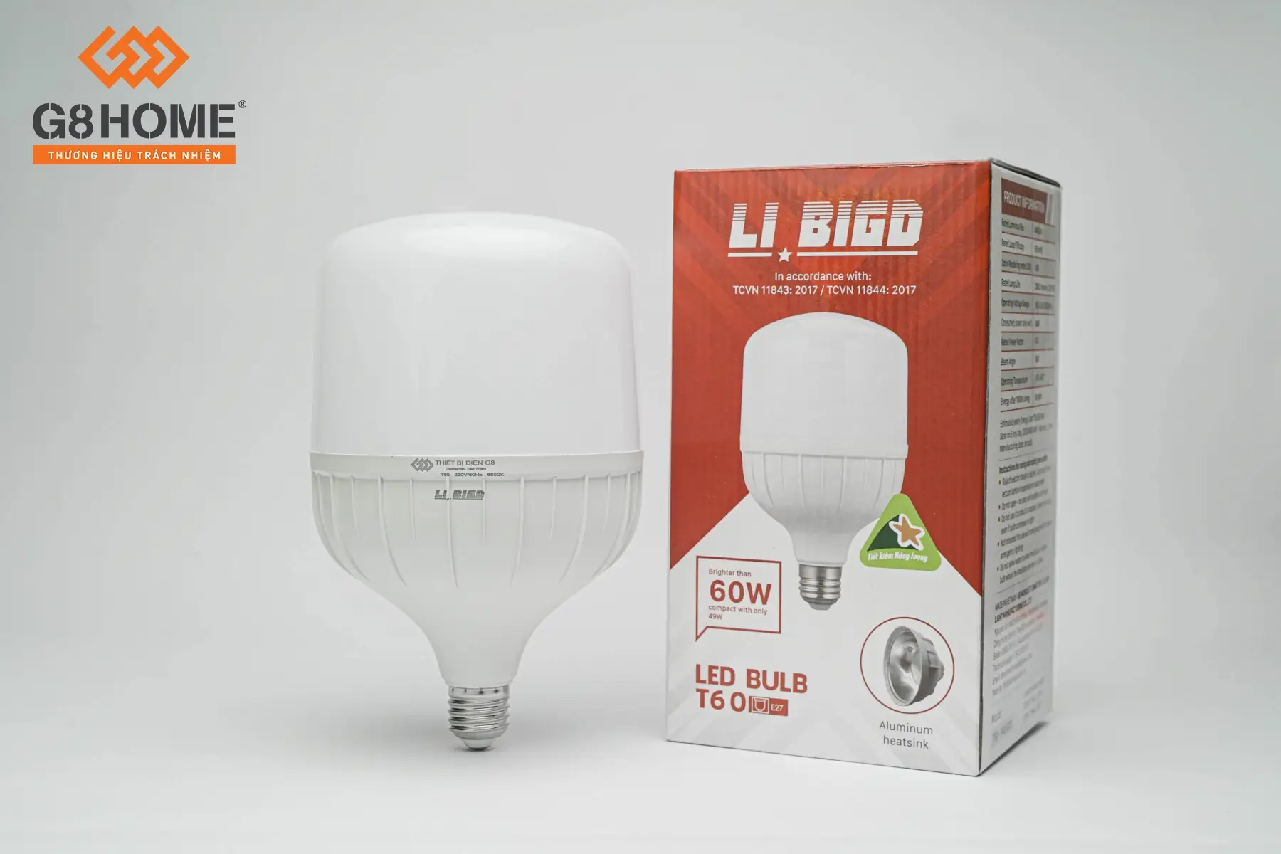 - ✔️ Chất lượng: BÓNG LED TRỤ NHÔM T60 (LI BIGD) đạt chuẩn tốt nhất.
